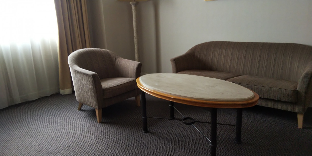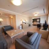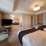 名前の通り、狩野川に面した場所にあるホテルでした。予約した部屋は45㎡ある、デラックスツインで、非常に広かったです。リビングエリアとベットエリアに分かれており、ともにゆったりと余裕のあるスペースがありました。大型のスーツケースも複数同時に広げられるゆとりがあります。トイレについても単独の個室でバスルームとは別の設定になっていました。清掃は行き届いており清潔感がありました。但し、そろそろリニューアルの時期かなという感じで、内装、家具類など古さは否めない感じでした。