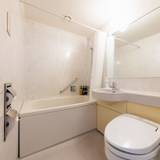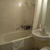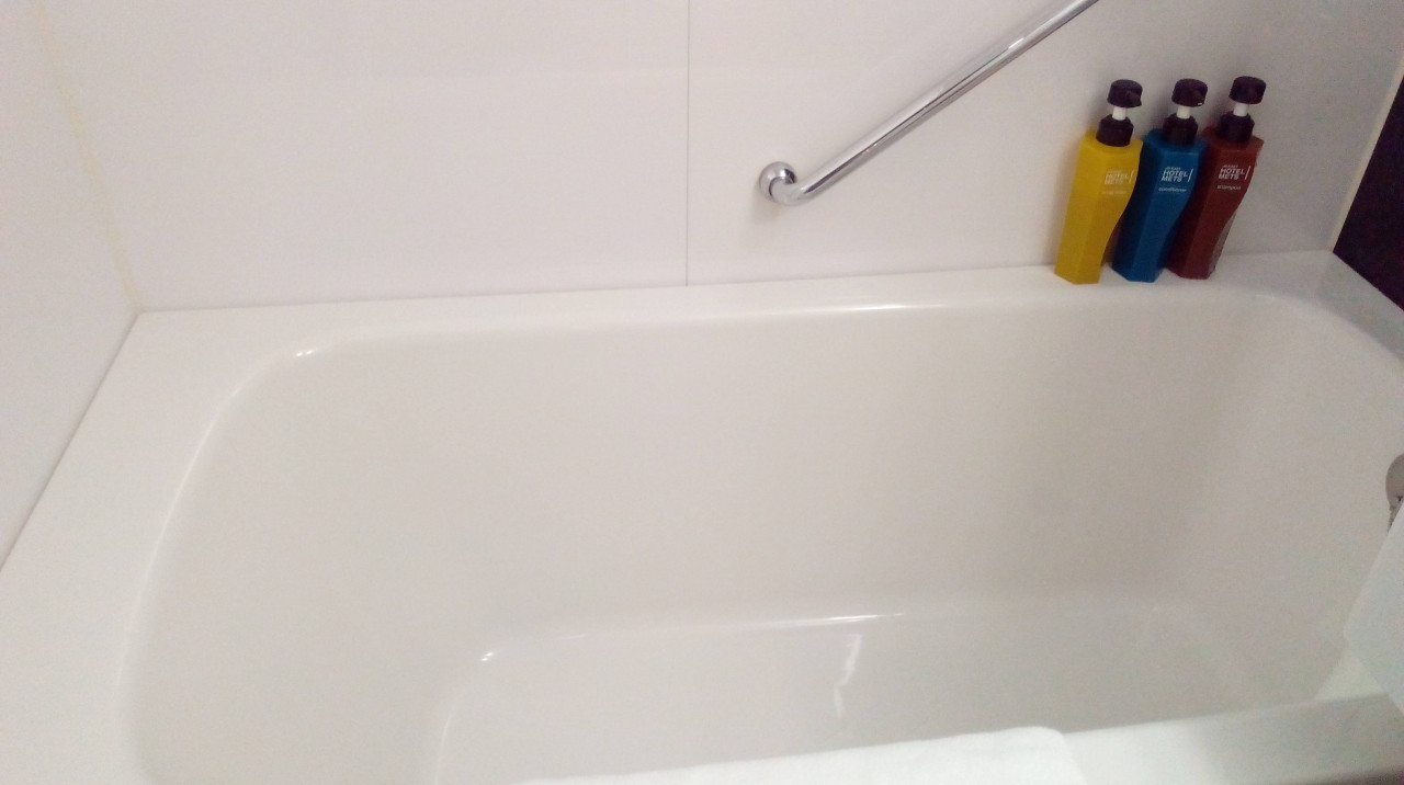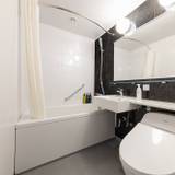 部屋の広さはビジネスホテルとして標準的、バスルームはやや広め。
