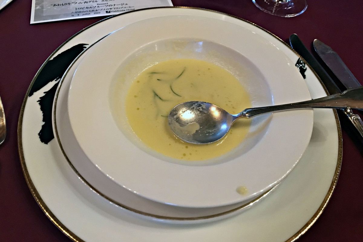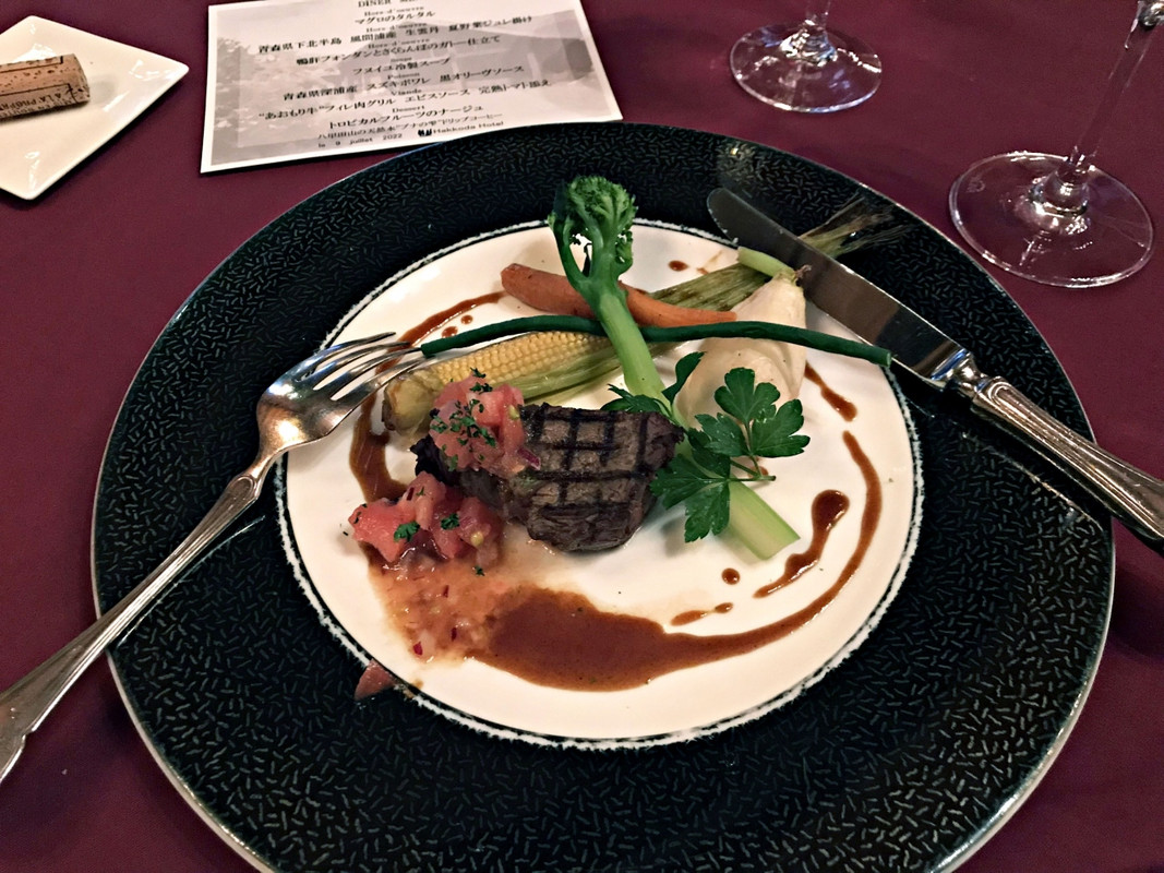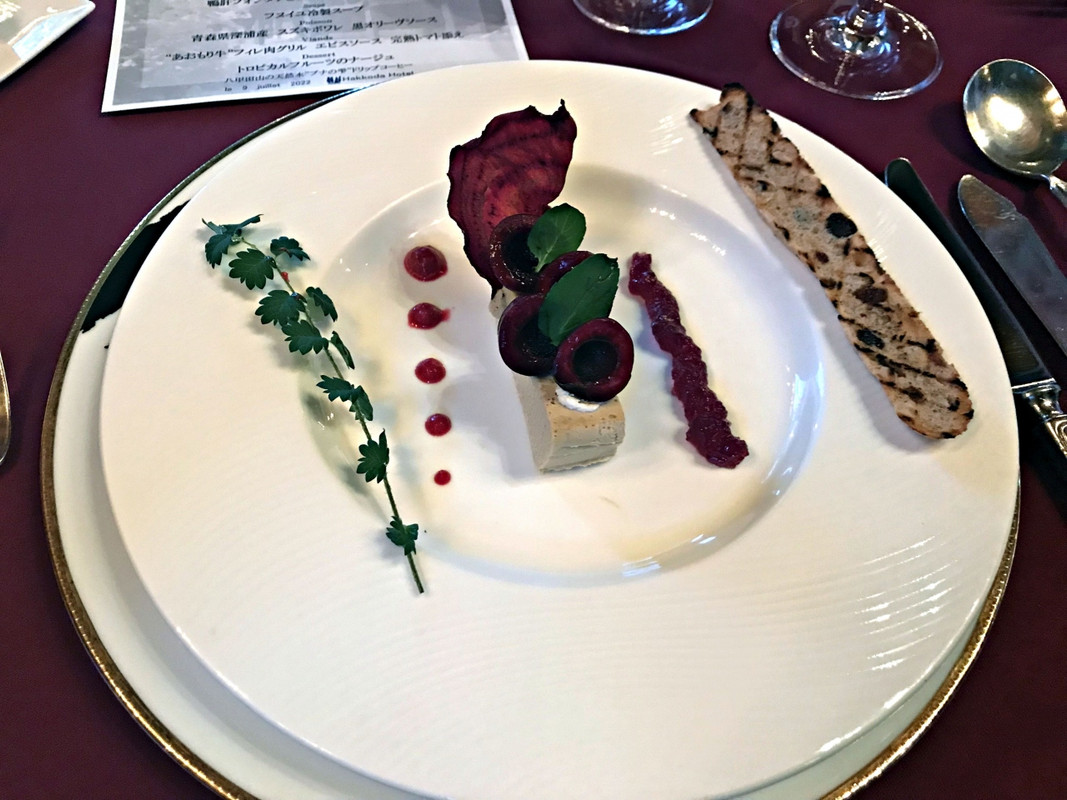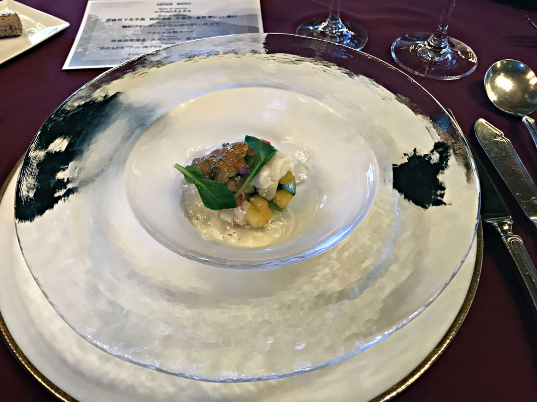 夕食はフレンチのフルコース。しっかりしたメニューの組み立てで美味しくいただけました。