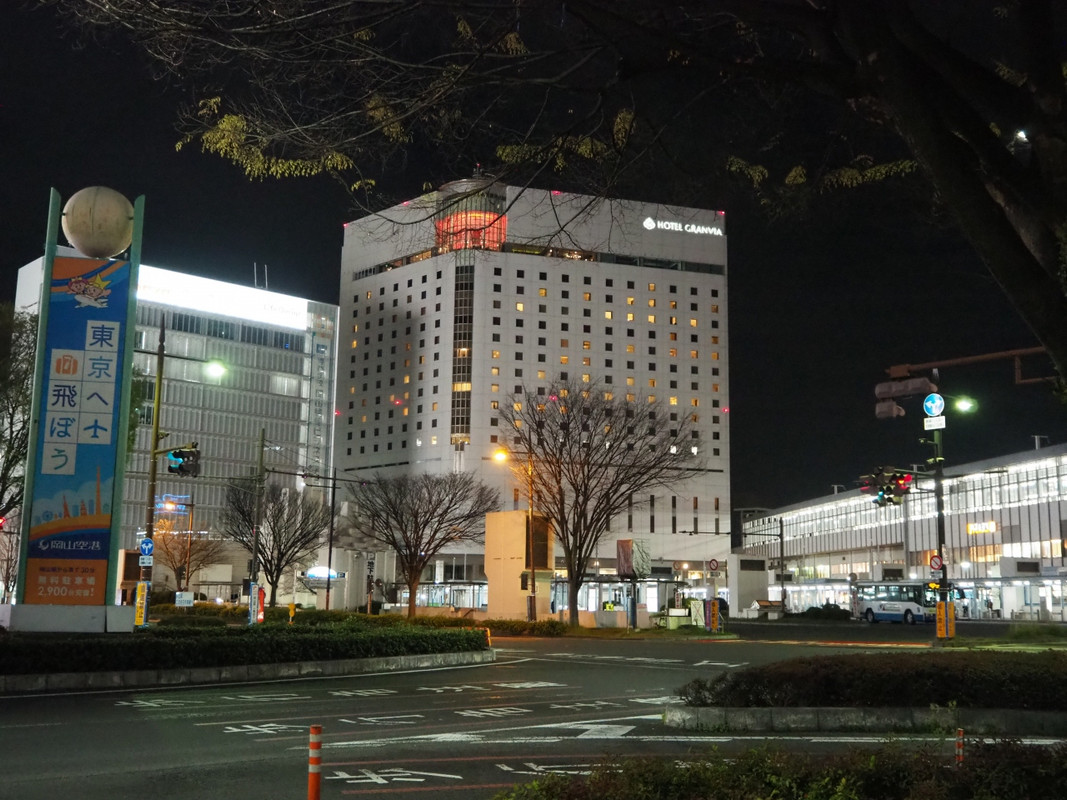 場所はJR岡山駅を出て目の前で、徒歩3分と言った感じの至便なロケーションなので、仕事で翌朝早い新幹線、などという場合には安心です。駅のところに飲食店、お土産や食料を買う売店、スーパーやドラッグストアがあり、あと、岡山の人気の中華そば「富士屋」の支店がここのホテルの並びにできて、本店は岡山駅から少し歩くので、中華そば好きな方には嬉しいとのことです。1 / 3