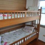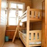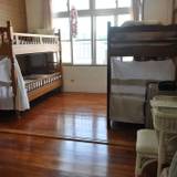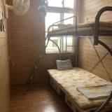 男女別2段ベッドのドミトリーと、民家の和室にベッドを置いた個室。