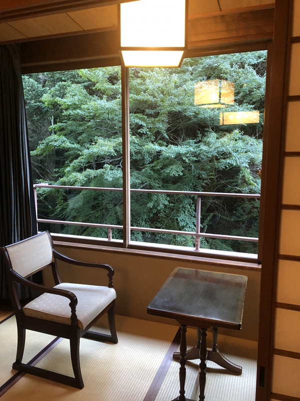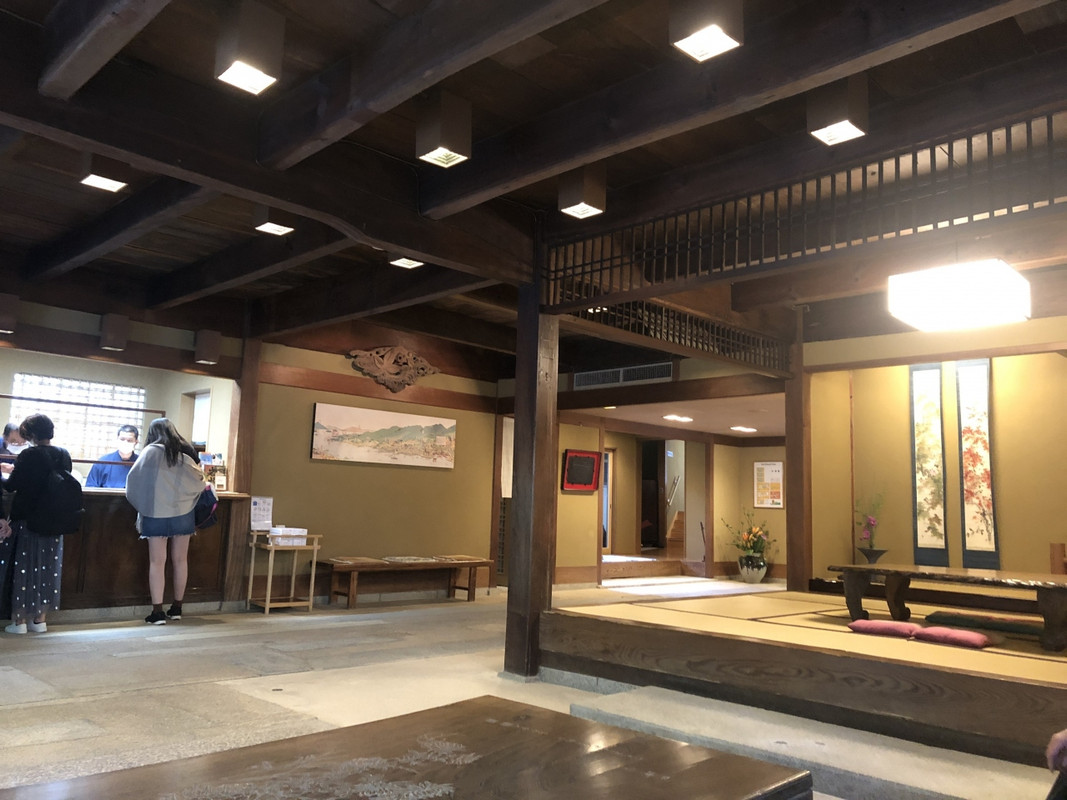 ロビーは広く趣があります。窓からもみじ谷の森林と川のせせらぎが聞こえて癒されます。コロナの影響で外国人の方がほとんどいないからか、他の口コミサイトに書かれていたような不思議な食事ではなく普通の和食が夜は部屋で、朝は食事処でいただけました。大浴場では化粧水や乳液がありましたが、部屋には男性用のローションしか置いてません。温泉は気持ちよかったですが、風呂場のコロナ対策はしてないようでした。部屋から持っていったヘアゴムがすぐちぎれて使用できなかった。食事係の方に勧められて、厳島神社のライトアップも見に行けて良かった。