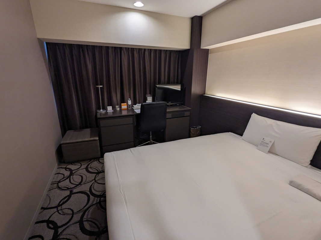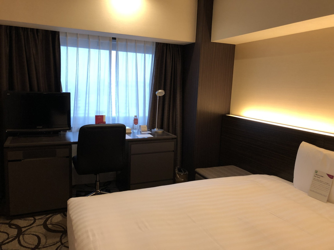 今回、ANAスーパーフライヤーズ会員専用のプランを利用。1泊9000円と少し高めに見えますが、実は朝食(2200円相当)がセットになっており、さらにワンドリンク券(フロントで缶ビールに交換しました)、さらにはIHGの会員であったのでお菓子までプレゼントされるなど、至れり尽くせりで、お得でした。1 / 10