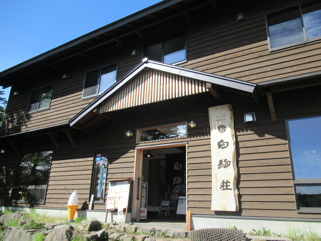299号線(メルヘン街道)の白駒池入口駐車場から20分ほど歩いた白駒池そばにあります。大正11年創業の山小屋です。食事もできますが、飲み物だけ注文して休憩で利用しました。池に面したベンチ席と室内の畳席を利用できます。ウォシュレットのトイレがきれいで臭いがなく快適でした。トイレを利用した人たちは、皆さん山小屋にあるトイレらしくないとびっくりしていました。休憩利用は新館ですが、新館と隣の旧館が宿泊施設です。白駒池の宿泊施設は白駒荘とテントサイトのある青苔荘で、主に登山客が利用しています。
