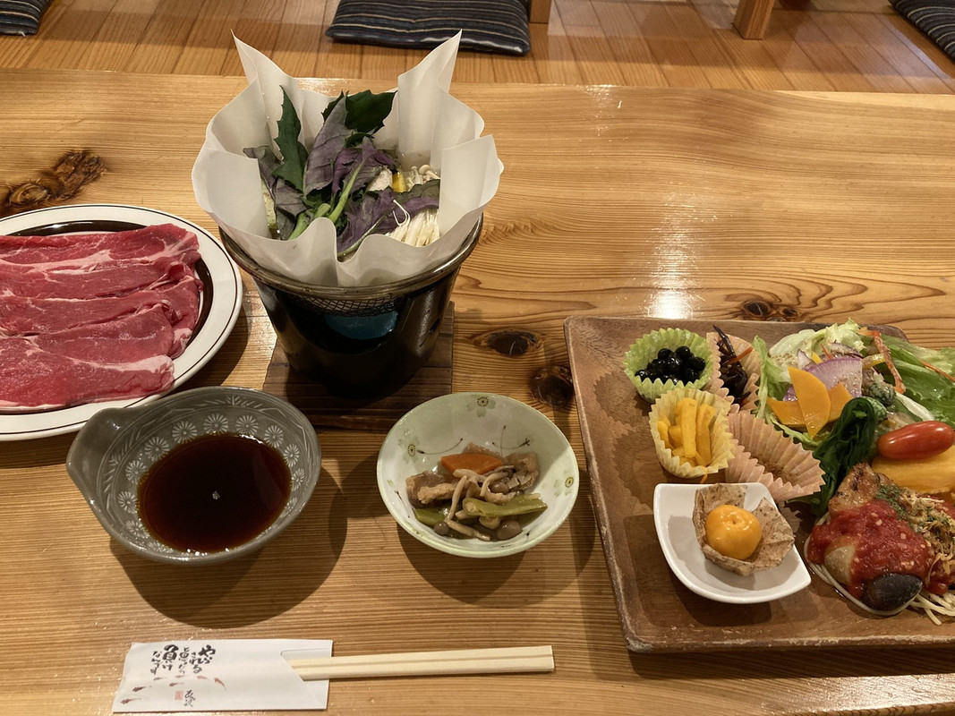 食事は育てた野菜や固形燃料で煮るお肉も有り、山小屋にありがちなツナギだらけのハンバーグではなくよかった。
