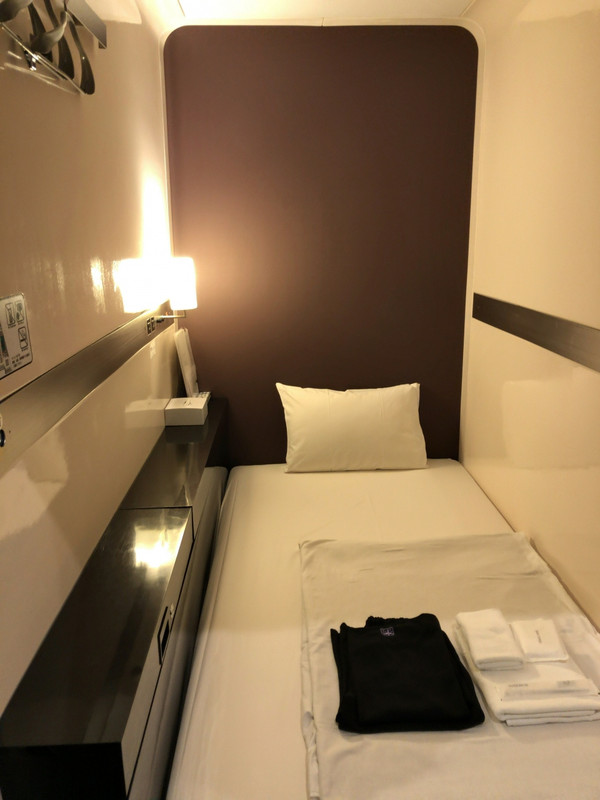 この系列のホテル利用は初めてですが、カプセルホテルと言っても天井が高いので、ルーム内で立って着替えできます。(笑)