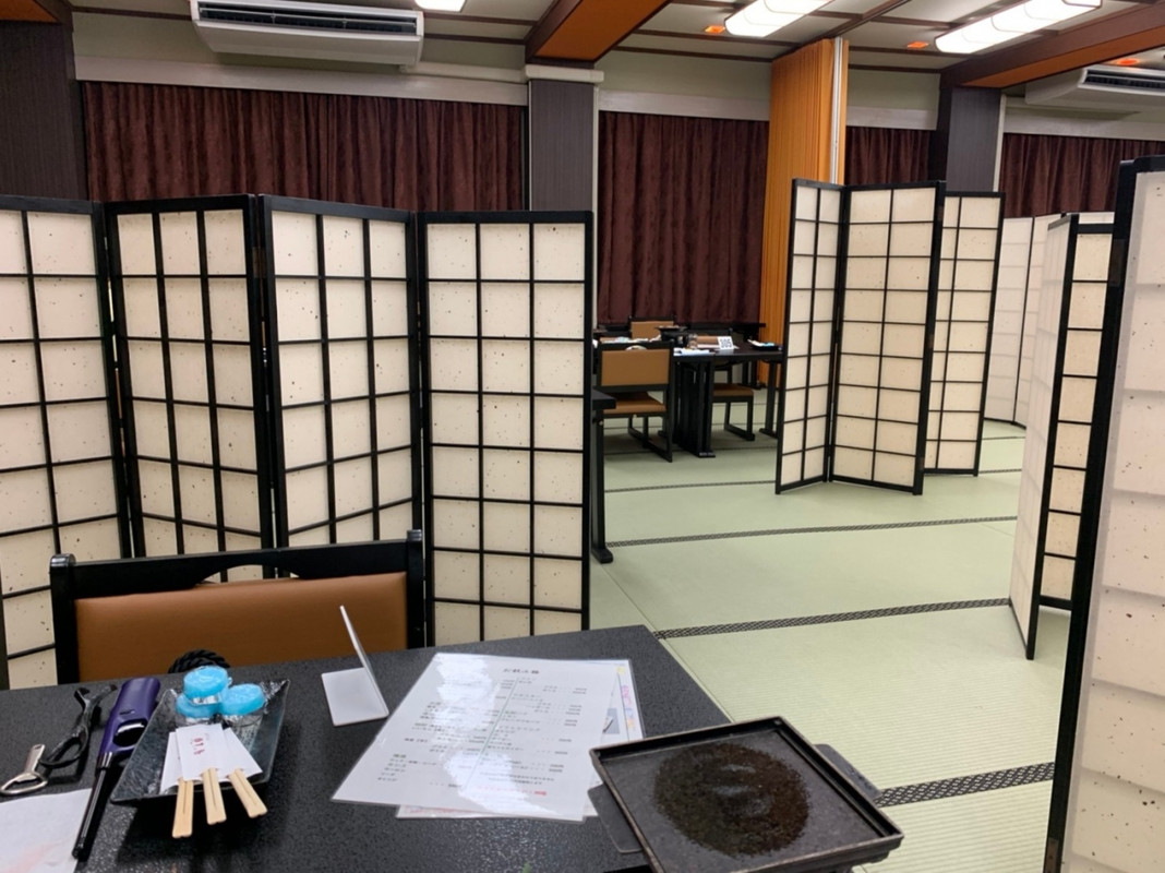食事は広間でそれぞれが仕切りが立ってられ区切られていました。