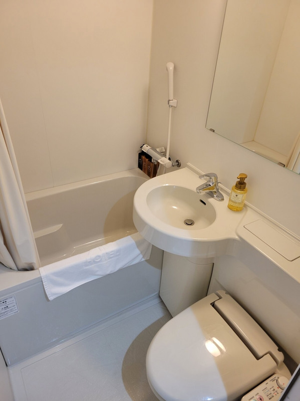 コンパクトにきれいにまとまった普通のビジネスホテルです。一階に大浴場があるためこちらのホテルをチョイス。この日は平日夜、女性用は貸し切り状態でしたのでとても快適に過ごせました。また、客室内でのトイレバスルームの段差はさほど大きくなく、よいポイントでした。(最近利用した数件のホテルは段差が大きくかなり慎重を要しましたので…)