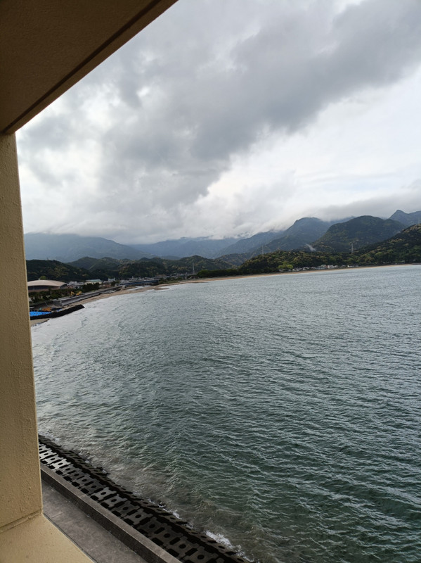 遠くに那智の滝が見れる眺め、でもエアコン効かず寒かった