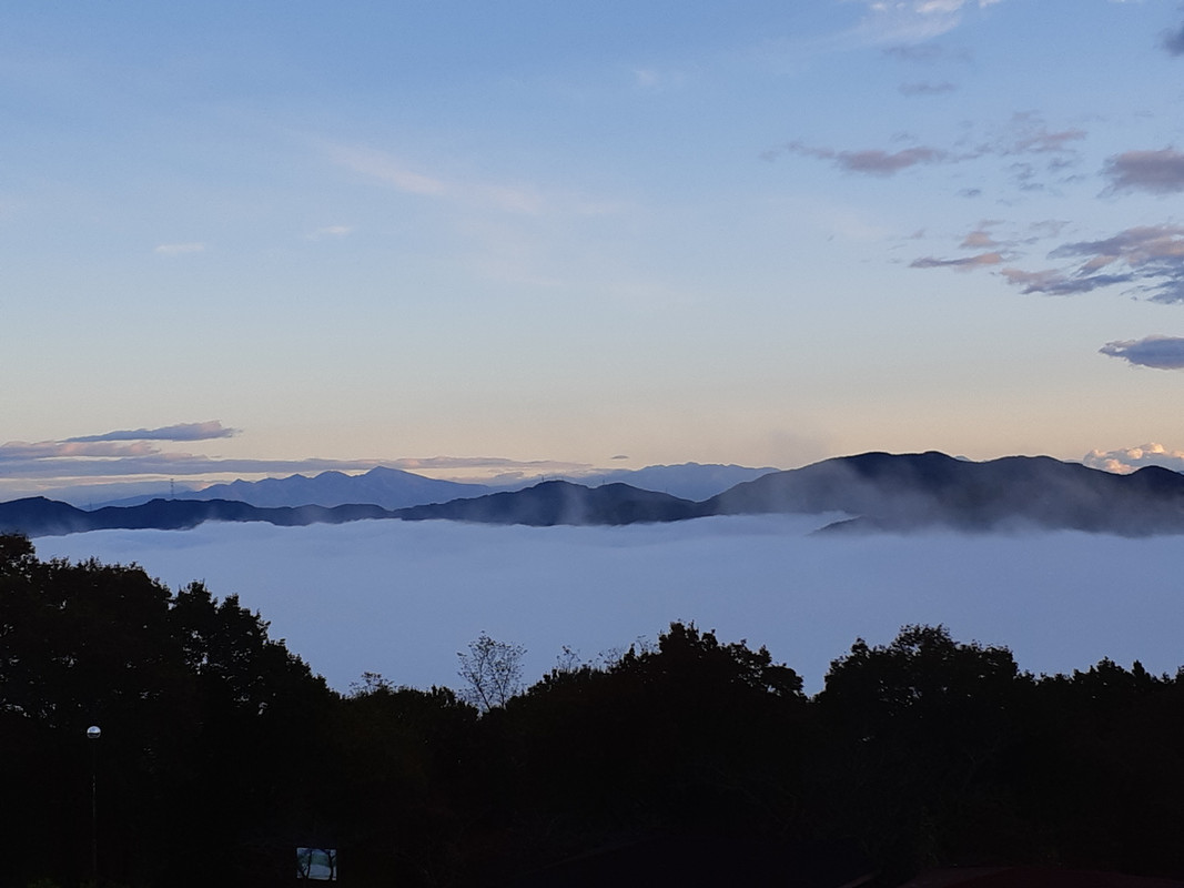美の山公園に行く途中にあり、かなり山を登った標高400mの高台にあります。泊まった日は運良く雲海が発生し、部屋からもレストランからもお風呂からも雲海を見る事ができました。夜は夜景ツアー、朝は美の山公園への雲海ツアーなどの(有料)サービスもあります。