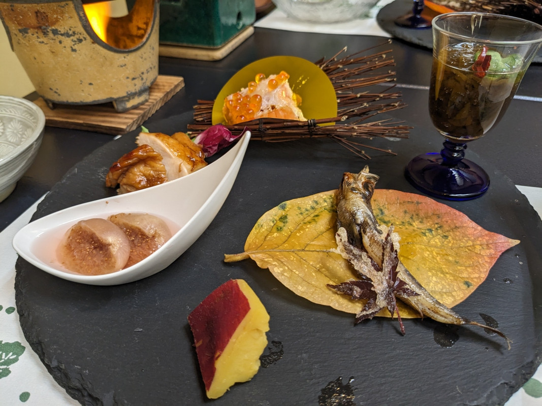 ウェルカムドリンクなどをいただいて部屋へ。かなり迷路な廊下の先にありました。眺めもいま一つ。外は見ないことにして過ごしました。薄い敷布団が1枚だけって‥、腰が痛くなります。お風呂は大浴場と竹林の露天があり、そちらは基本的に混浴ですので、備え付けの湯あみ着を着て入りました。午後遅めの時間でしたがちょっと暗くて、長湯をする気分にもなれず‥。だいたい脱衣所の造りが簡易すぎ。寒いし、着替えに気を遣います。ちなみに女性専用時間は夜です。大浴場の露天は熱すぎたので、内湯でのんびりしました。食事は豪華さはないですが、量としては十分。メヒカリがたったの1本しか出てこなかったのはとても残念でした。