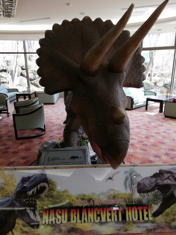 ホテルの敷地内に入ったところから恐竜たちがお出迎え。
