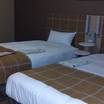 室内はヨーロッパ風?のイメージ。ツインルームをシングルユースしましたが、ベッド以外はせせこましい造りでした。