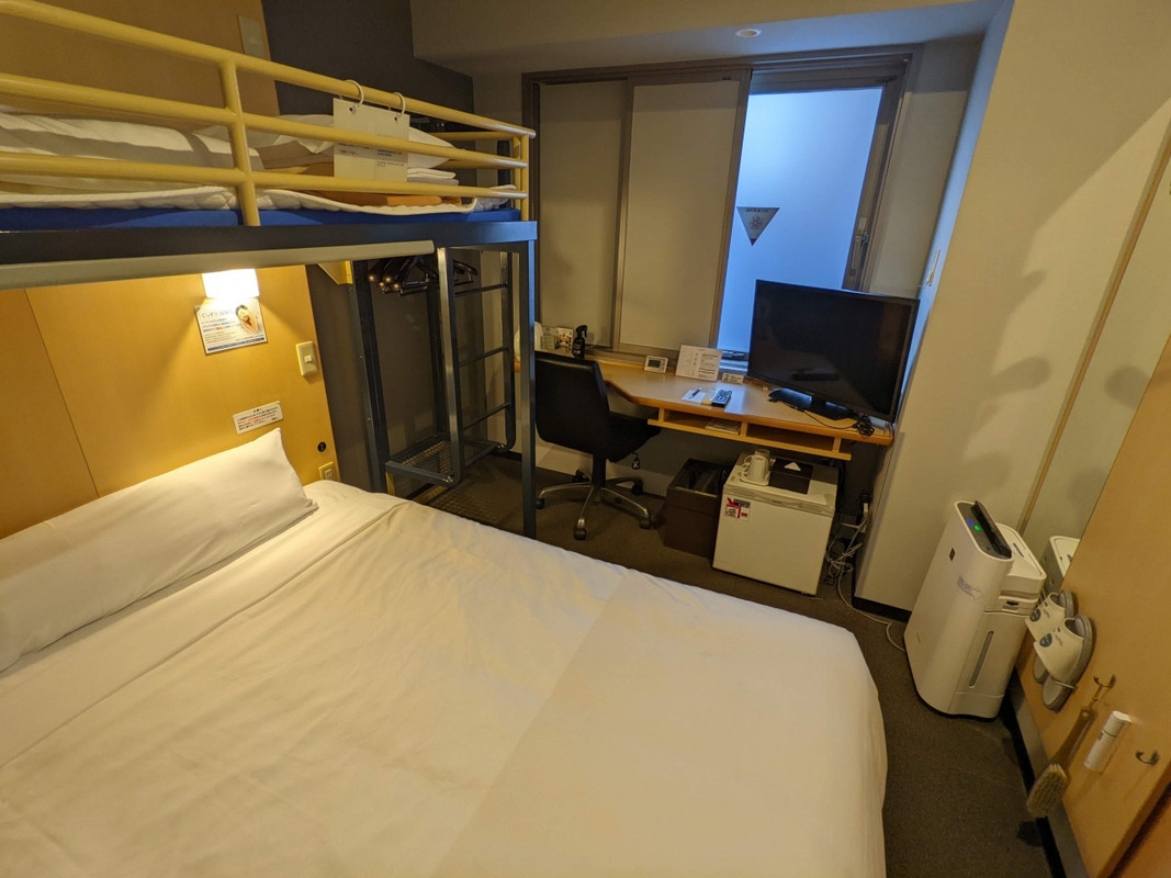 丸亀、三原など近年建設されたスーパーホテルに比べると、ここのような古いスーパーホテルの部屋は少し広めです。(といっても東横インと同じぐらいですが・・・)