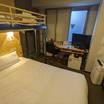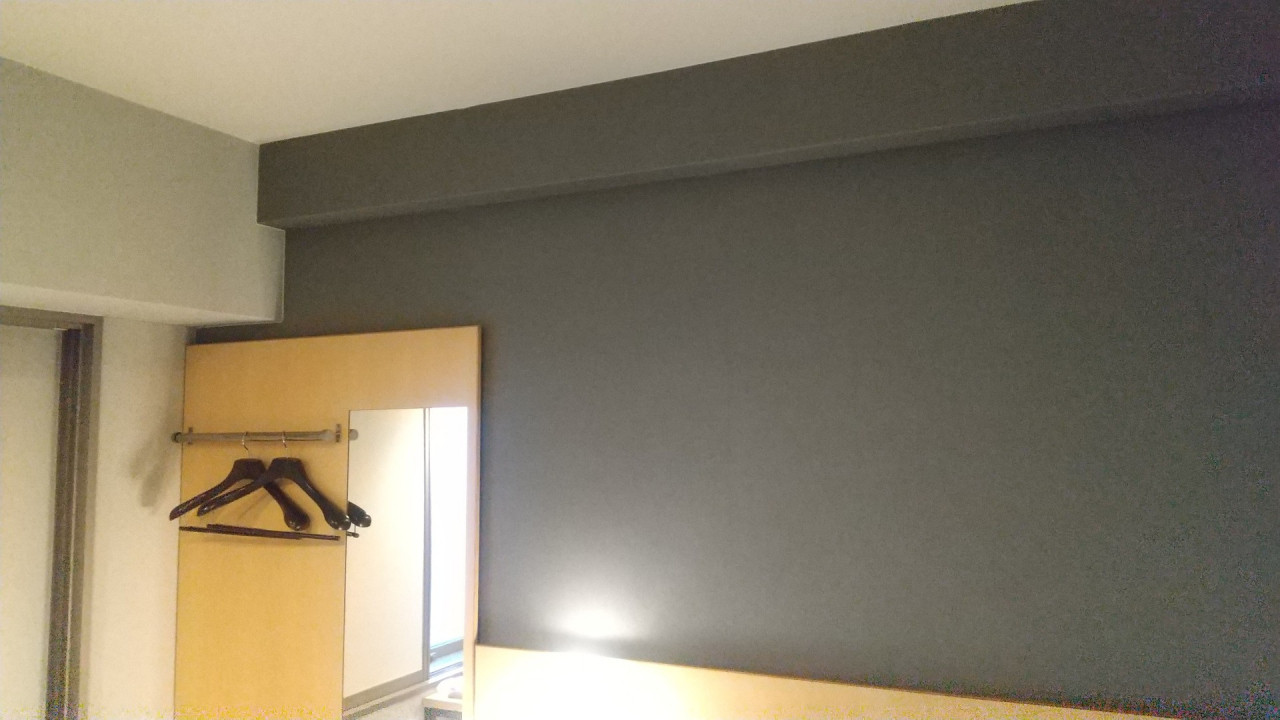 部屋は寝るだけなら問題ない広さ。照明も暖色系で落ち着きます。