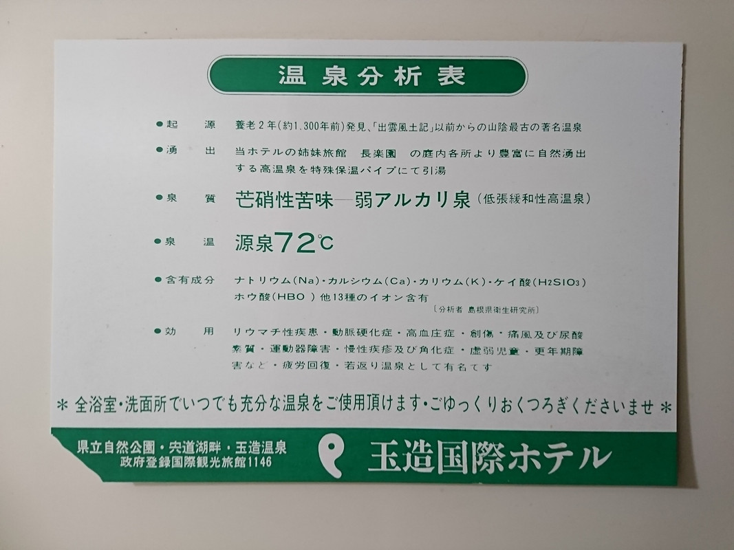 玉造温泉 玉造国際ホテルに宿泊しました。