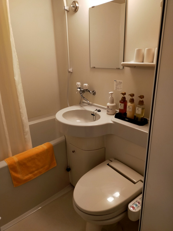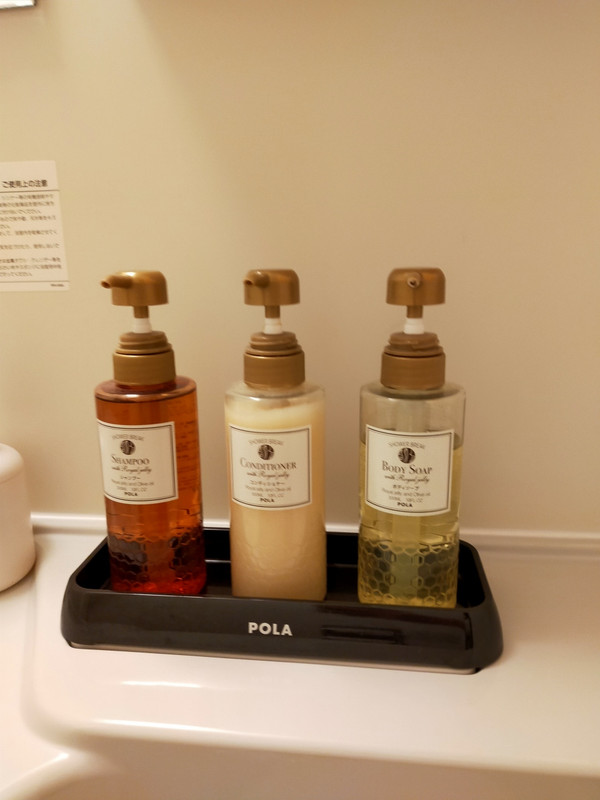 部屋はビジネスホテルのような狭さで、テレビも小さめ。飲料水は置いておらず、お茶のティーバッグのみ。アメニティがポーラなのが女性には嬉しいところ。