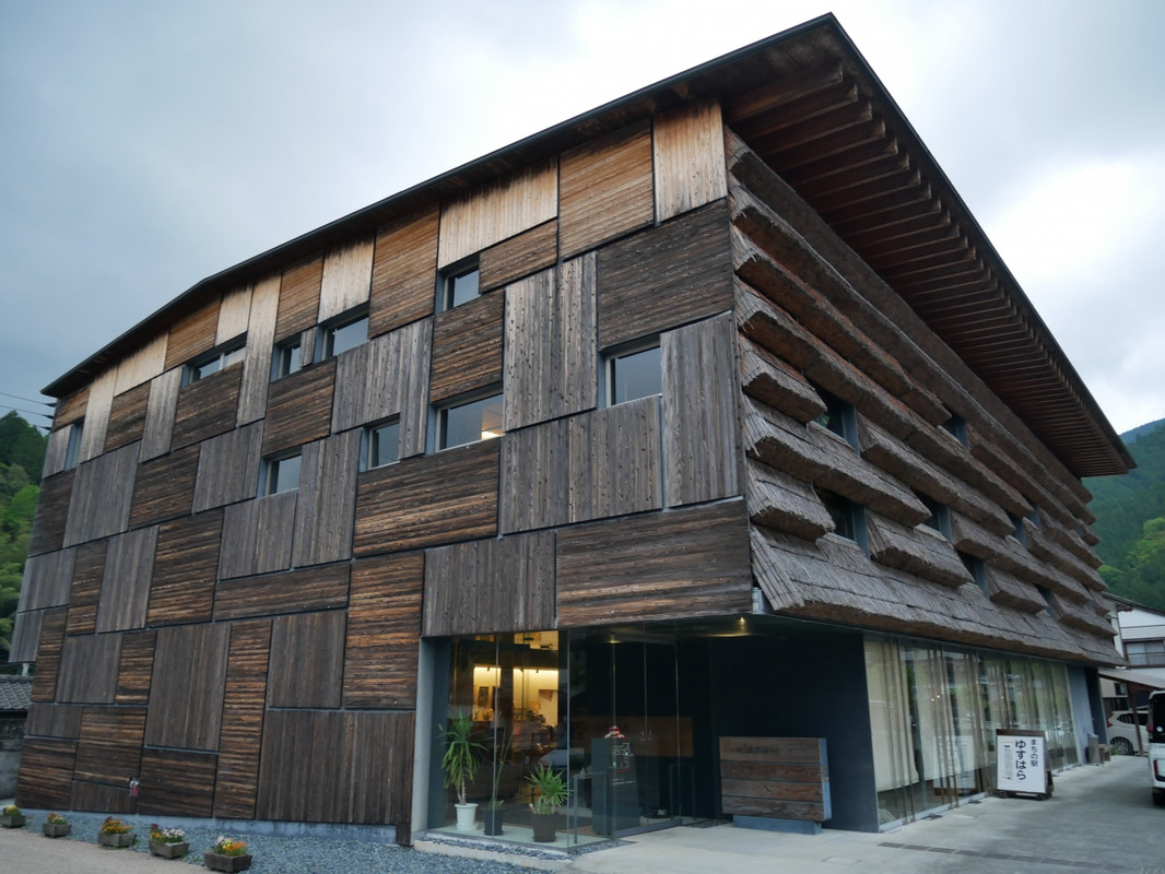 隈研吾さんが設計された、木造のしゃれたホテルで、檮原の街にうまく溶け込んでいます。