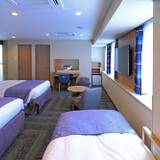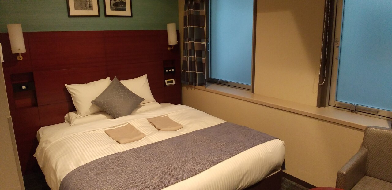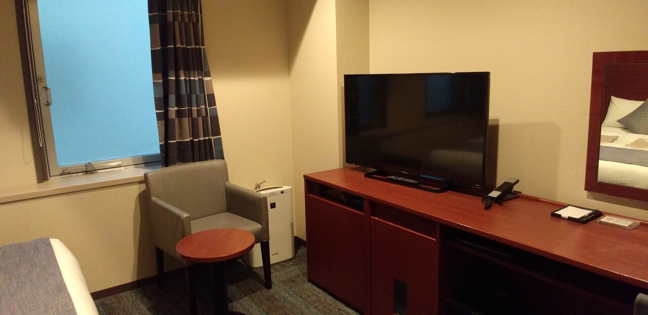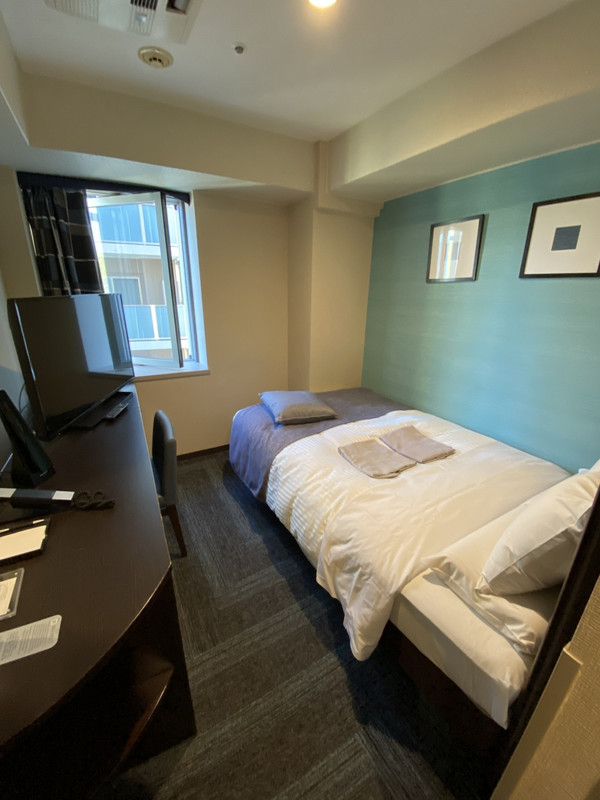 「いざ、神奈川!」で安かったので宿泊しました。シングルで予約しましたがフロントで本日はダブルにアップグレードしておきましたと言ってもらえたのですがベッドに枕は2セットあるものの部屋は2人だとかなり狭いかなという感じでした。テレビが大きいのはよかったですね。