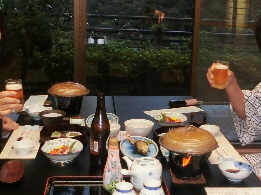 改装済みの綺麗で広々とした大きな座敷で、テーブルと椅子の席でお隣のテーブルとはとは距離があった中で食事です。