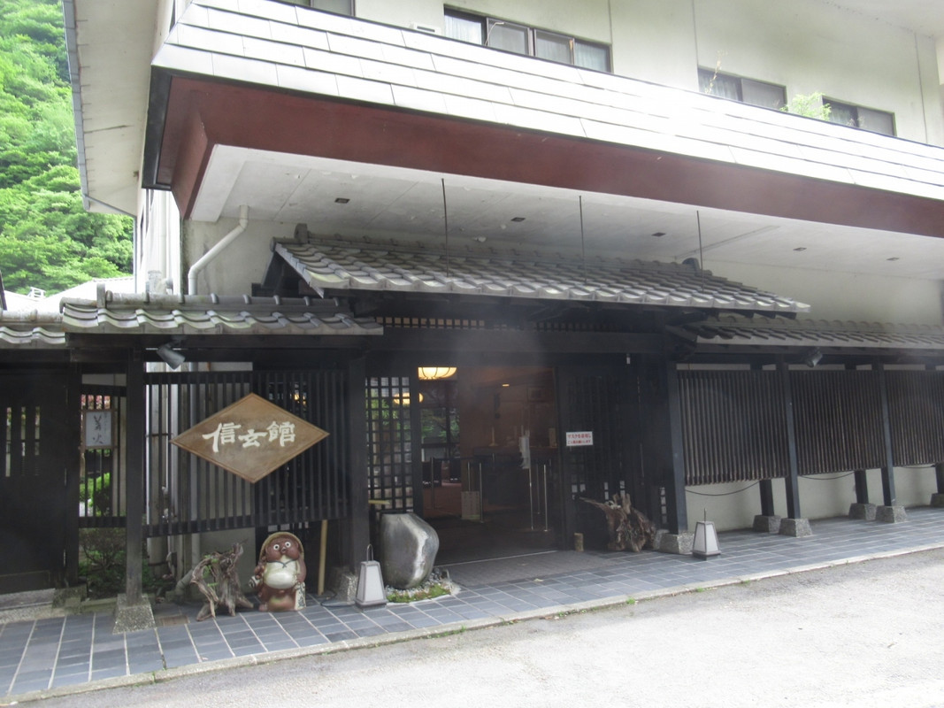「中川温泉 かくれ湯の里 信玄館」は、豊かな自然に囲まれた温泉宿です。川のせせらぎをBGMに、純和風の客室で寛ぎのひとときを。特筆すべきは、3種類の無料貸切風呂や、地元食材を活かした田舎風の夕食。心地よい風に包まれながら、温泉三昧の癒し体験を。