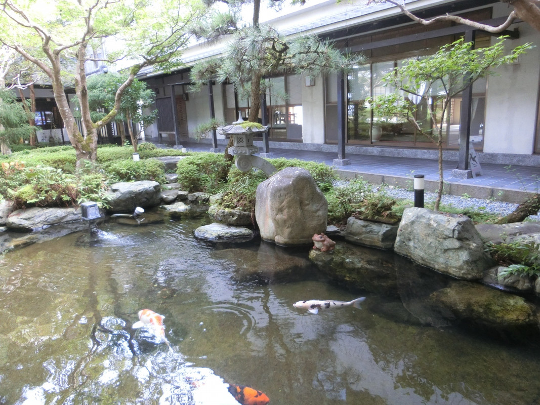 ロビーの前の庭は日本庭園ぽくなっており、池には立派な鯉が泳いでいました。
