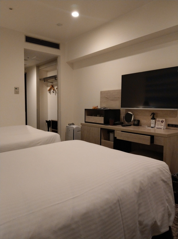 客室はコンパクトながらとても綺麗。アルコールスプレーとスーツデオドラントスプレー常設。冷蔵庫には珍しい缶のミネラルウォーター。お茶のティーパックのみでコーヒーはなし。空気清浄機ではなく、衣類乾燥付き加湿器。最上階のレストラン、次回訪問する機会があれば利用してみたい。1 / 5