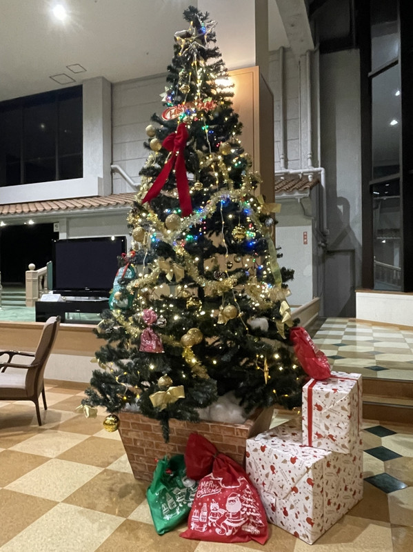 11月の下旬、まだ晩秋の雰囲気で寒さは感じませんでしたが、1階のロビーには大きなクリスマスツリーが飾られておりました。バイキングの料理は充実しており、スタッフがその場で焼いてくれる牛タンを堪能しました。