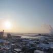 海に近いとはいえ、岸からは200mほど離れた市街地の中に建っているので、周囲の景色は眼下に家並みや街路が伸びていて、流氷の風情は、知床の北こぶしや雄武のホテル日の出岬ほどではありませんが、夜は街路のネオンが輝き、遠くに紋別港の突堤の明かりが光っているなど、比較するとロマンチックな景色です。
