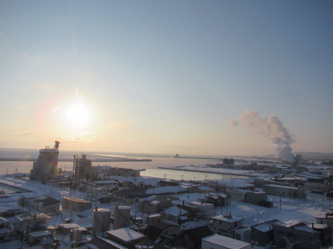 紋別の宿としては海に近い方で、屋上が開放されていて、冬は流氷ひしめくオホーツク海やガリンコ号が発着する紋別港の様子が眺められます。