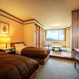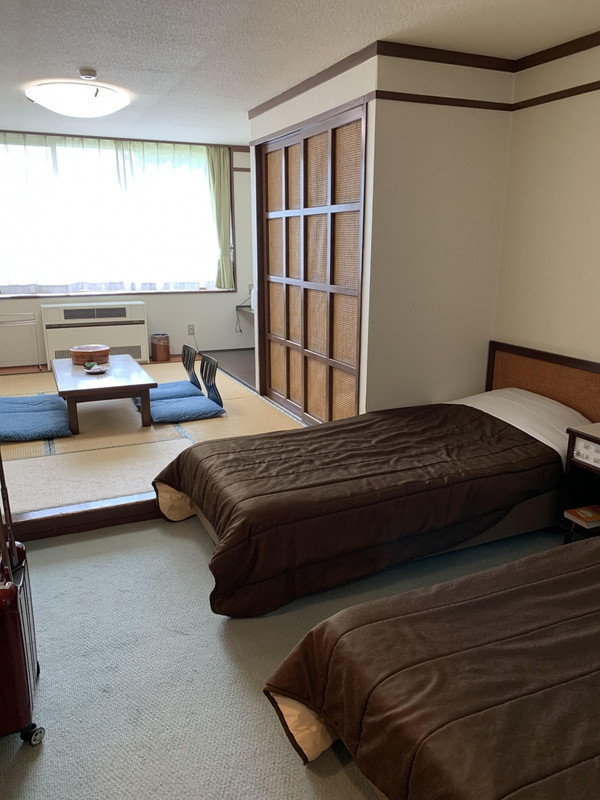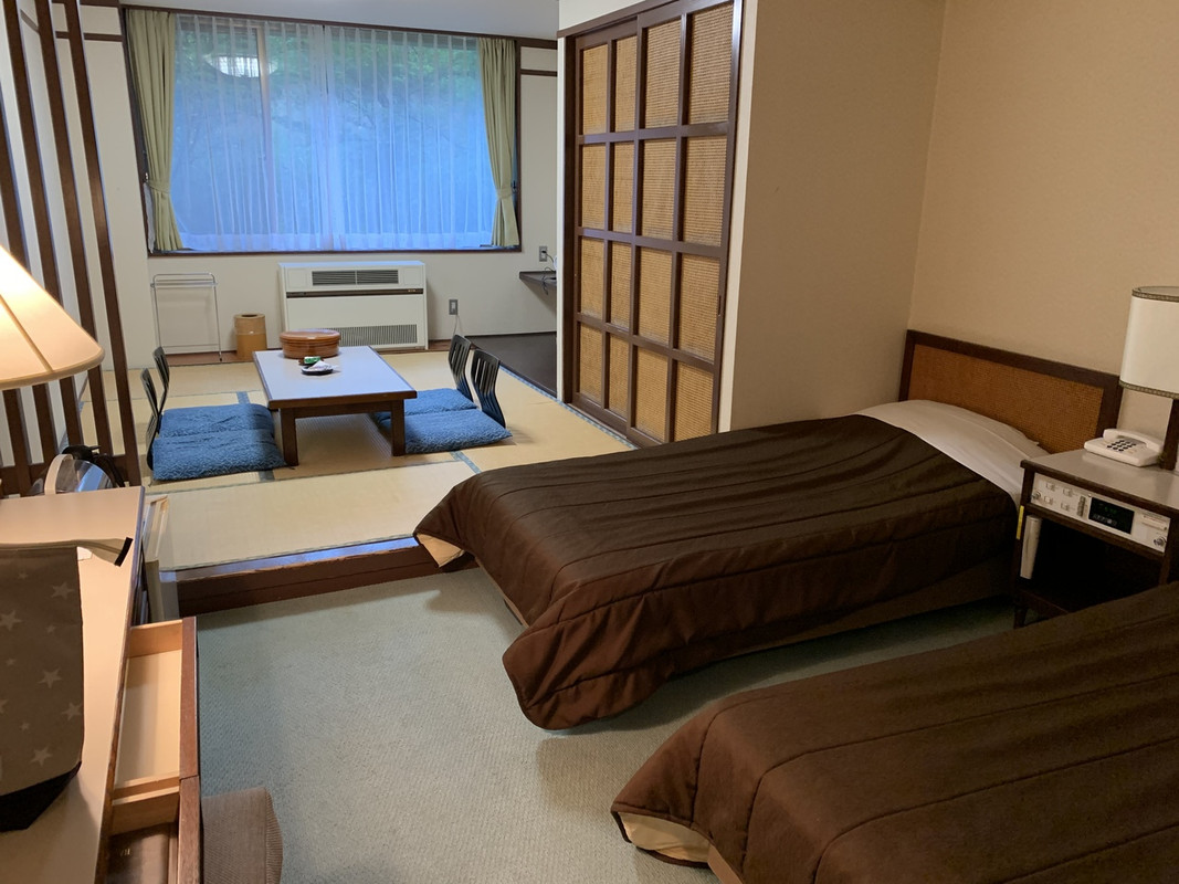 旅行社のパックツアーで利用しました、追加料金を払って和洋室指定にしましたが、追加のないツインルームでもお部屋の広さは同じな様です、1F部分は小洒落た感じですが、客室部分は結構古い感じ、網戸が有りますが、窓を開けなくても何処からか虫が入ってきました、温泉大浴場はまぁまぁな広さで、お客も少なくゆっくりと入ることが出来ました、今の時期は日帰り入浴は営業していない様です(コロナ禍の為)