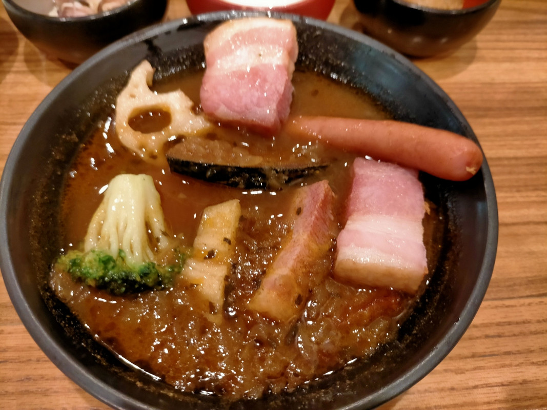 イクラや甘えびマグロ、イカ、サーモン、ネギトロを自分で盛り付ける海鮮丼やスープカレー。ホタテやアスパラ、ジャガイモ、トウモロコシなどのグリルや松前漬けなど美味しくいただきました。1 / 6
