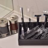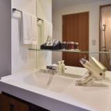 部屋にはシャワーしかないですがコンパクトにまとまっていて機能的です。洗面スペースと寝室の間に扉があるため、廊下を通る人の話し声が気にならないところもいいと思います。冷蔵庫にはウェルカムフルーツの用意がありました。施設はとても新しく、気持ちが良いです。1 / 2