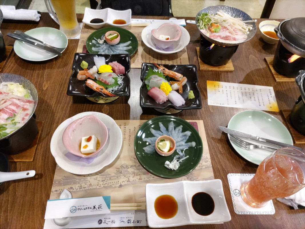 (山口県らしく、フグのお菓子、萩の名物の夏みかんのお菓子やジュース、萩名物の焼き物、萩焼など)いくつか購入しました1 / 4