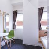 下段のベッドで1泊3000円。上段のベッドの方が少し安い。トイレ、シャワーは共用。部屋には小さな丸テーブルがあるのみ。歯ブラシ、剃刀、タオルはあったが、寝間着に類するものはない。部屋の広さは4平米程度。