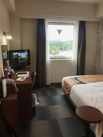 ホテル自体は快適。1階にファミリーマートがある便利なビジネスホテルです。スタッフはチェックイン時・アウト時とも外国の方でしたが、明るく丁寧な対応でした。チェックインの時に頂いたお菓子が美味しかったです。お部屋はコンパクトですが清潔で過ごしやすく、ベッドの頭元にもコンセントが有り便利でした。ホテル内に自動販売機・コインランドリー・お土産品や地元焼酎の並ぶ小さな売店(午前6時30分~午後21時)あり。1 / 1