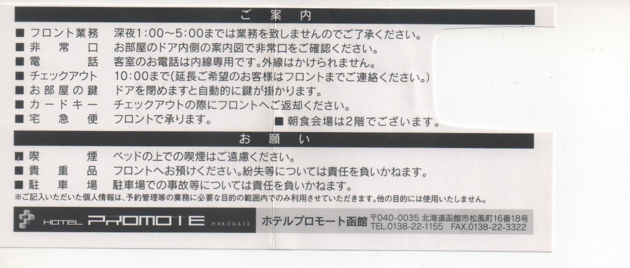 - 日本の厚生労働省は、インやホテル、モーテルなどを含むいかなる種類の宿泊施設でも、日本に居住してない海外のお客様の宿泊に際し、国籍および旅券番号の確認とパスポートのご提示を義務付けております。また、各宿泊施設には、ご宿泊者全員のパスポートをコピーし保存する義務が課せられておりますので、ご協力をお願いいたします。
