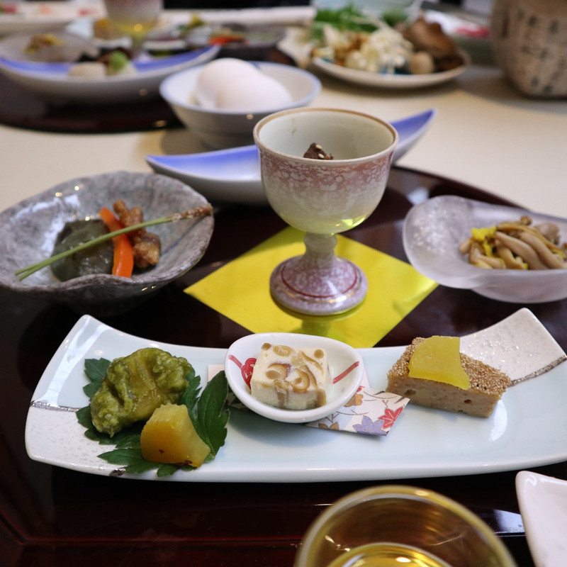戸倉駅から送迎バスで約15分の場所に位置する老舗ホテル、「戸倉上山田温泉 湯元 上山田ホテル」。1919年創業で、上山田温泉を代表する存在。天然温泉100%のかけ流し温泉は、時間帯や気温、天候により湯の色が変わるのが特徴です。和食とフレンチから選べる食事は、長野の地元食材を堪能できるメニューが揃っています。露天風呂付き部屋もあり、自然の変化を感じながら温泉を楽しむ贅沢なひとときを過ごせます。