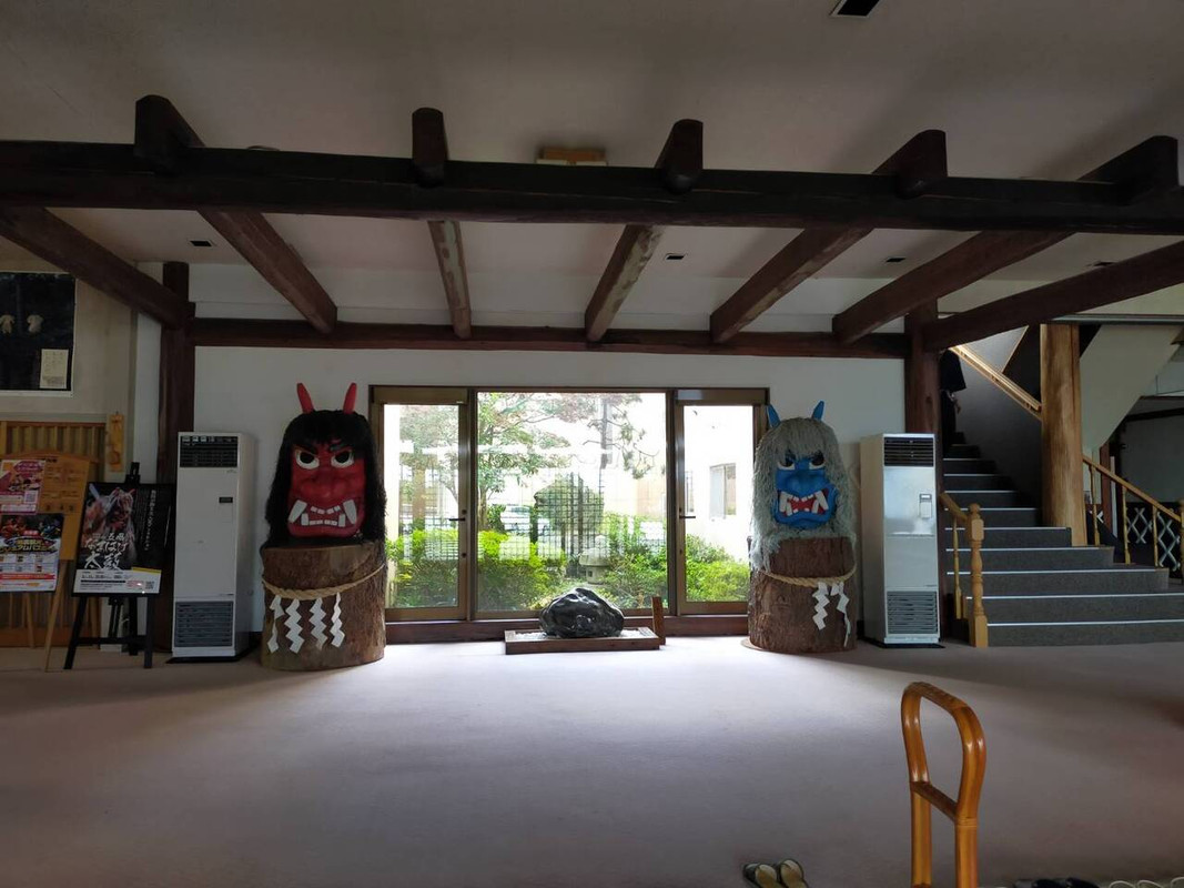 お風呂はナマハゲから温泉が出てきており、珍しい光景でした。内湯の温泉は温度が高めでした。