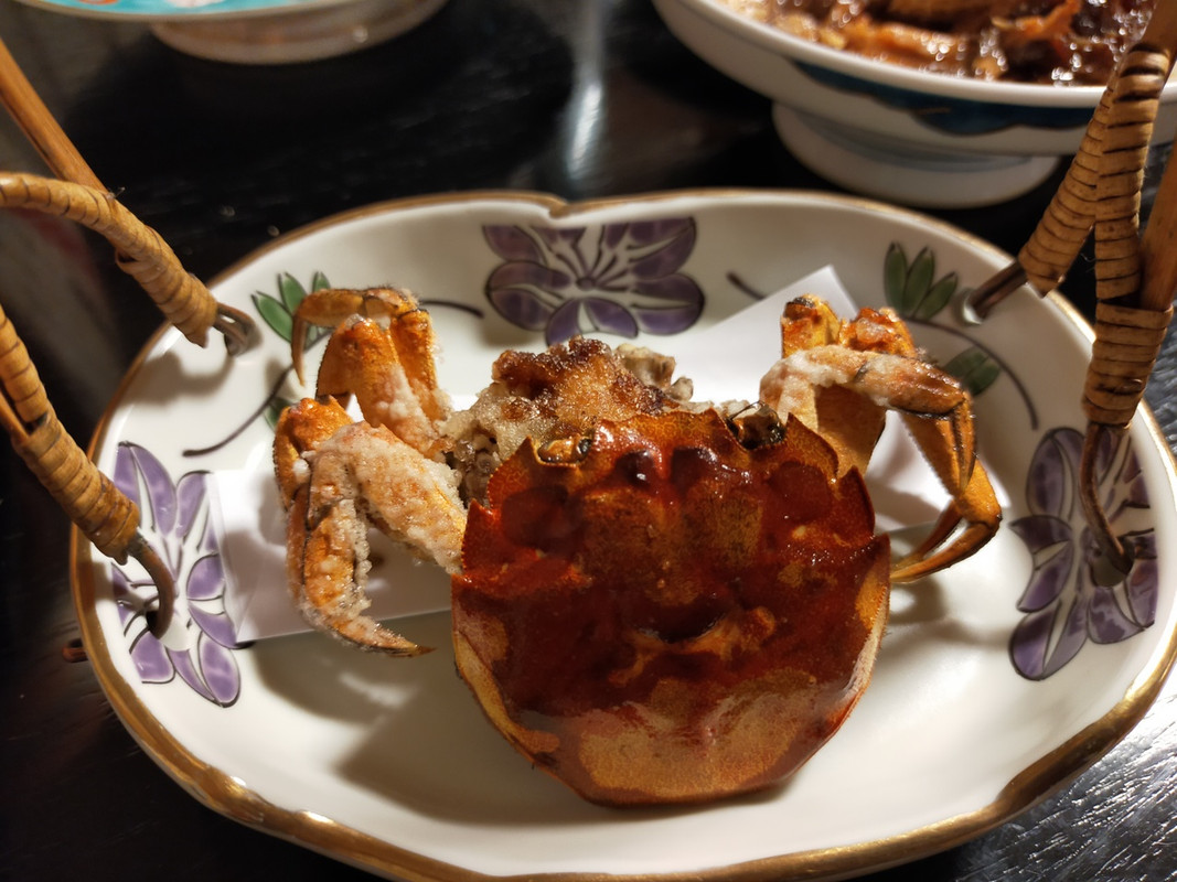 2階建ての豪農の館です。鹿鳴館を模した木造の階段や、2方面から上がれる縁など、建物の凄さに感激します。その分部屋にはトイレや洗面所はなかったので、何を期待して宿泊するかにより、印象は変わると思います。川蟹の各種料理が出るなど珍しい料理でした。ヨウ素の入った塩辛い温泉で、温泉好きにもオススメです。