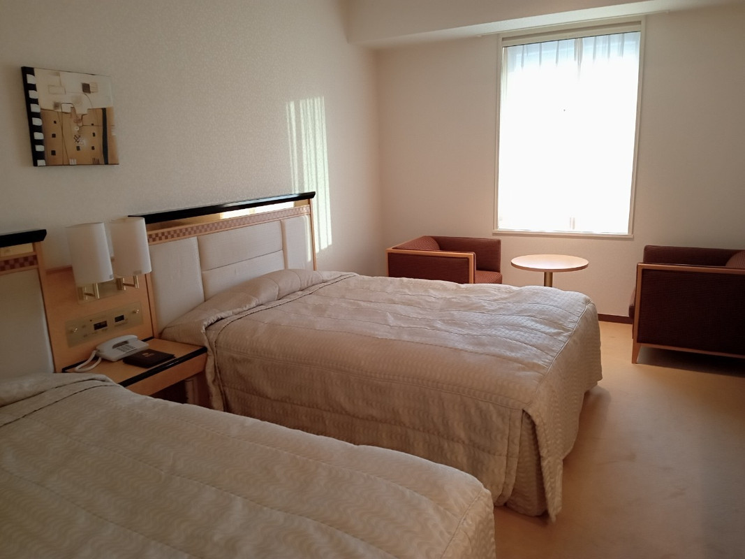 空いていたのか市内側ですが、大きなツインルームにアップグレードもしてもらえました。