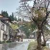 本館は三階建の重厚感ある木造建築です。お風呂と食堂は別館があり渡り廊下でつながっていました。カタクリのおひたしなど、山の幸が豊富で食事も美味しかったです。ちょっとみどりがかった薬湯の温泉は、塩辛い濃厚なお湯でした。桜と残雪も綺麗でした。