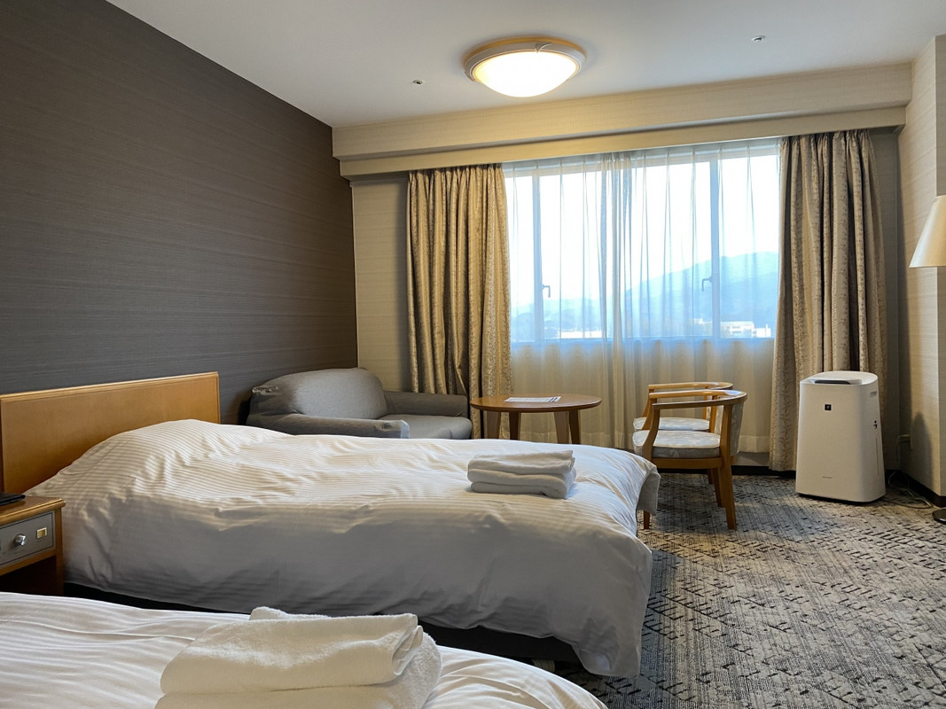 今回は、近鉄橿原駅から直近で、橿原神宮へは徒歩圏内であることからこのホテルを選びました。部屋は掃除が行き届いており快適でしたが、何より1階にラウンジがあり、宿泊者は無料でビールやワインなどのアルコールや、コーヒー、ジュース、さらにはおかきやチョコなどが楽しめます。また、地下には、温泉大浴場があり、柔らかい泉質で旅の疲れを癒すことができました。