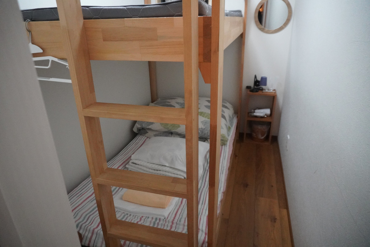 Kanazawa Guesthouse Stellaは、ひがし茶屋町と便利のいい場所だし、そんなところで安く泊まれるのならそれでいいじゃないかとここにしたのですが、いやいや、部屋は相部屋ではありませんが、物置のように小さな小さな部屋。想像以上に狭い場所で、ちょっとへこみました。二段ベッドに入るだけでも体の大きい人だったら、難しいかもしれませんね。ただ、管理人さんはとても親切。兼六園の夜のライトアップの情報を教えてくれたり。ありがたかったです。