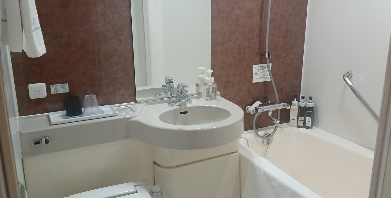 チェックイン時に広めの部屋が空いていたのでどうぞ、と言われ部屋に行ってみると車椅子でも利用可能なユニバーサルツインルームでした。
