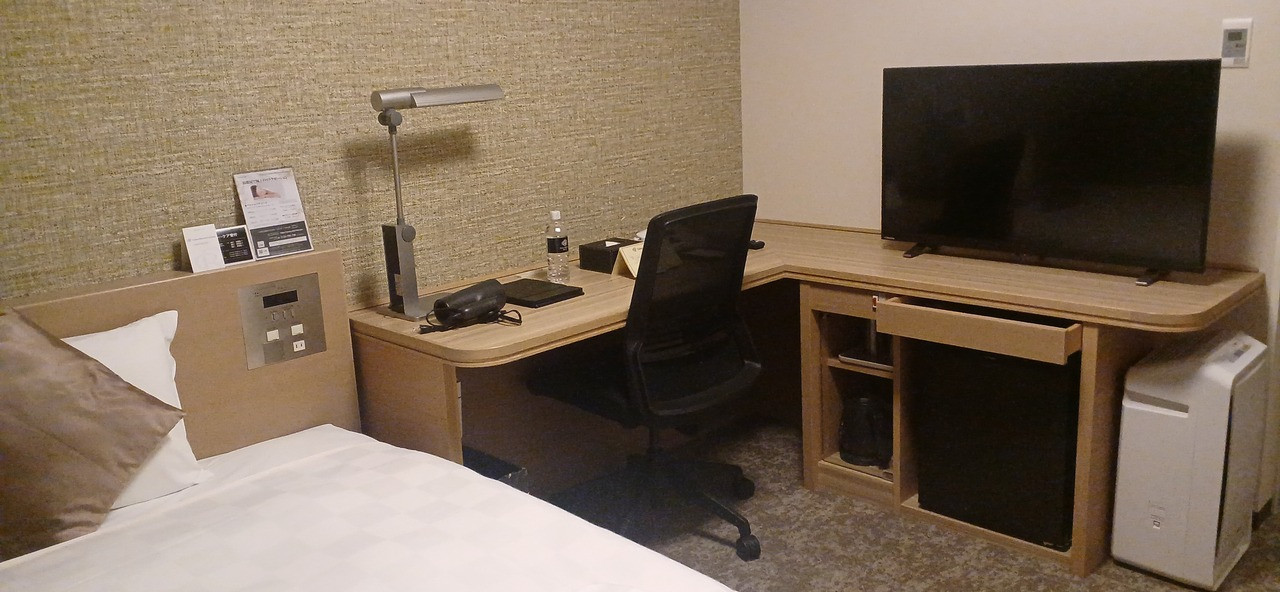 28平米もあって広々としておりデスクの他に小さいテーブルと椅子もあって何かと便利で良かったです。
