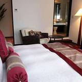 部屋のデザインはあまり好みではなかったものの,書斎,リビングダイニング,和室,寝室+バスルームからなる広大な空間に,個別に調節できるエアコンが4機,加湿機能付き空気清浄機も設置されています。トイレと風呂は別,高野槙風呂にカーテンで仕切られたシャワーブースがあります。バスローブとパジャマも用意され,シモンズのベッドも快適でした。