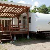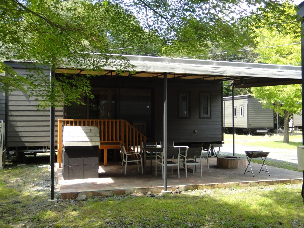西湖の畔にあるコテージ・キャンプ施設。コテージやキャビン、トレーラー、テントサイトなど様々な宿泊施設があり、泊ったのはトレーラーコテージ「Fire Base・KAMADO」。