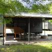 キッチンやトイレ・シャワー完備、デッキスペースでは備え付けの石窯でピザを焼いたり、ファイヤーピットで焚火も楽しめる。天気も良くアウトドアでの食事は気持ちが良かった。