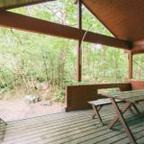 部屋のシャワーの他に沸かし湯ながら大浴場があり、こちらはキャンプサイトの皆さんで賑わっていた。釣りやカヌー、自転車、ドックランなどのアクティビティも楽しめ(利用しなかったが)、お手軽アウトドア体験にはぴったりの施設だ。1 / 5